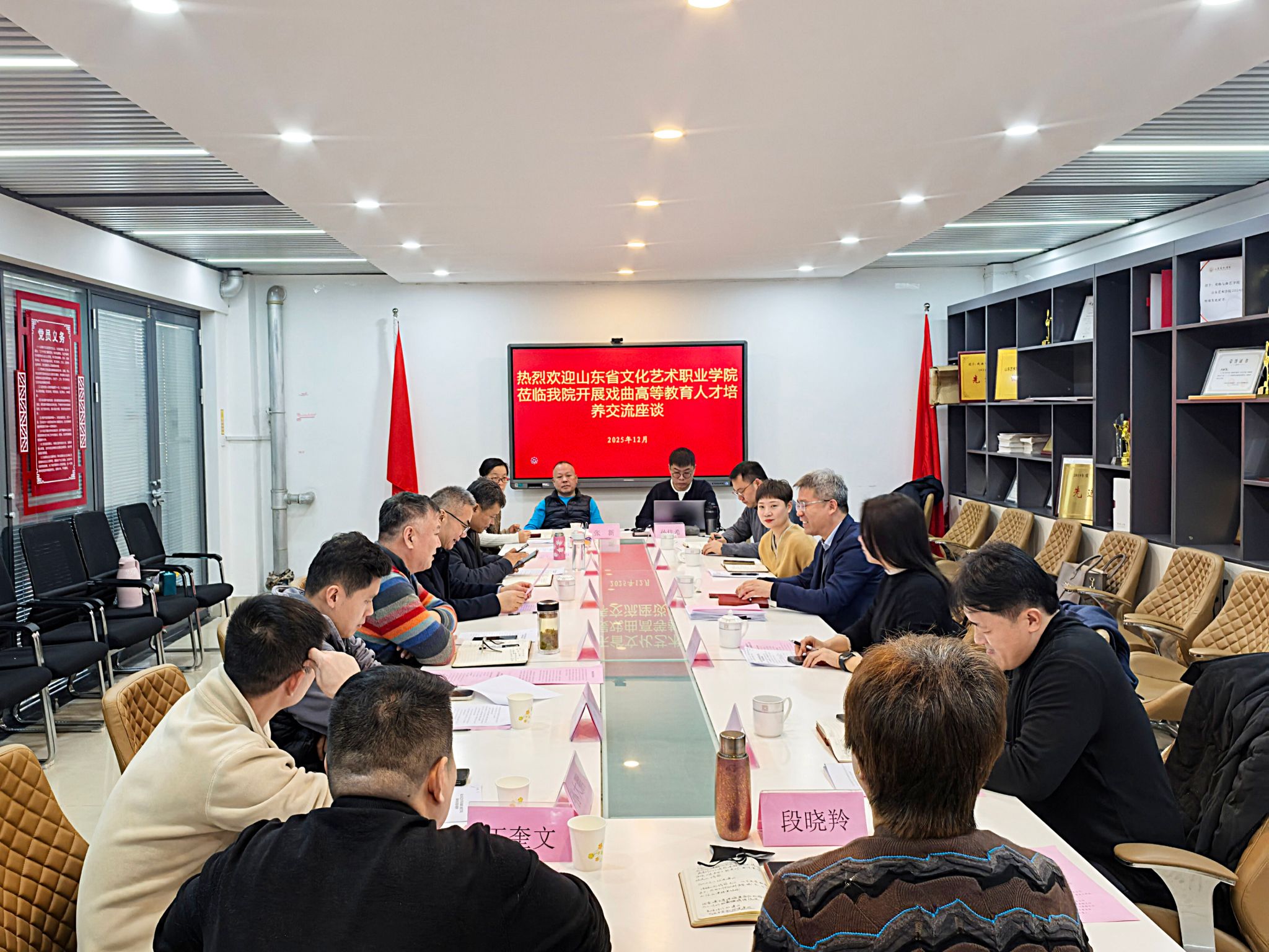 12月3日,山东省文化艺术职业学院党委书记张东林、副院长贾鸣鸣一行5人到学校长清校区调研交流,学校党委副书记苏茂兴出席座谈会,戏曲与曲艺学院党政领导班子成员、科级干部、系主任、教师代表参加。