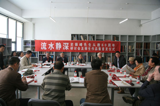 据悉,“流水靜深”史振峰先生从教60周年研讨会暨师生作品集首发仪式是我校美术学院为庆祝建校55周年举办的系列活动之一,之后还将举办赵玉琢、李振才、单应桂、曹昌武教授教学研讨会。
