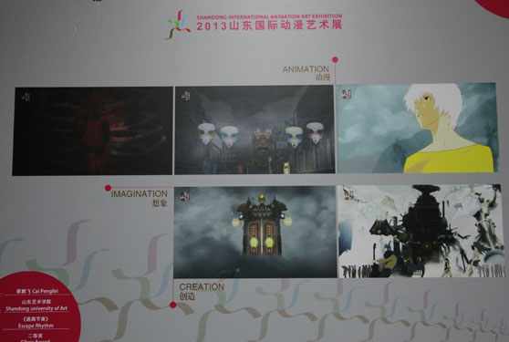 “2013山东国际动漫艺术展”是为祝贺十艺节在山东的举办,为进一步促进文化与科技的融合,发展新型文化业态,加强国际间动漫艺术交流与合作,丰富群众文化艺术生活,面向中韩大中学生而举行的一次国际动漫艺术展览活动,也是我校55周年校庆系列活动之一。展览评出金、银、铜、特别推荐及优秀奖共计200人次,我校传媒学院蔡鹏飞同学的作品动画短片《逃离节奏》获得银奖,.耿霞、吕乔乔等同学获得优秀奖。金、银、铜与特别推荐奖的中国获得者还将参加由组委会提供的免费“韩国之旅”,并将于2014年年初参加在韩国首尔举行的中国获奖人员的颁奖仪式。