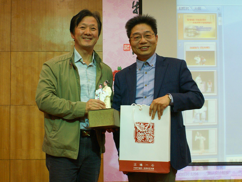 活动中,苏州昆剧院院长蔡少华向大家介绍了由台湾著名作家白先勇先生领衔打造、苏州昆剧院主要排演的青春版《牡丹亭》剧的制作、巡演等相关情况。昆曲是我国传统戏曲中最古老的剧种之一,希望通过活动进一步传递传统文化的精髓,实现了中国传统文化的校园传承。随后双方互赠特色礼物。
