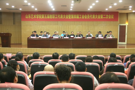 9月30日下午,山东艺术学院第五届教职工代表大会暨第四届工会会员代表大会第二次会议在长清校区图书馆报告厅隆重召开。全体校领导、离退休校领导、88名正式代表参加大会,省级人大代表、政协委员作为特邀代表参加大会,处级干部、民主党派负责人、正高职称人员、博士列席了大会。这次会议的议题是,审议通过《山东艺术学院校内津贴分配制度改革实施方案(草案)》。院长张志民在大会上讲话。副院长高启光作了关于《山东艺术学院校内津贴分配制度改革实施方案(草案)》的说明。大会由副院长王力克主持。