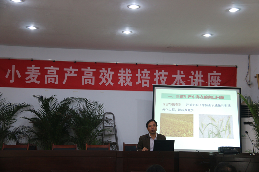 金秋时节,既是收获的季节又是新的播种时节。9月25日,山东艺术学院和山东省文化厅驻村“第一书记”在郓城县黄集乡政府会议室联合举办了“小麦高产高效栽培技术讲座”。 此次讲座邀请的是山东农业大学博士生导师、小麦种植专家贺明荣教授。乡党委书记、分管领导村干部和种植户代表以及驻村“第一书记”共计百余人参加了培训讲座。
