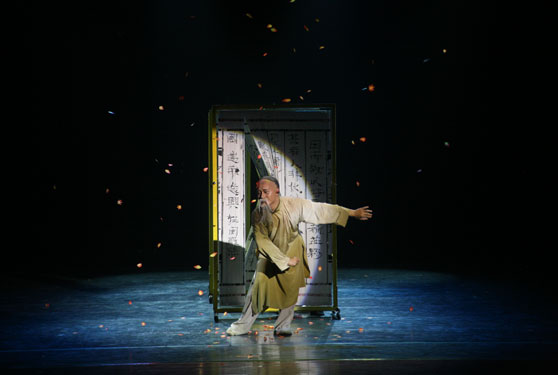 19时30分,原创舞剧《柳泉寻踪》在古朴典雅的氛围中拉开了序幕。该剧由我校舞蹈学院师生自编、自导、自演,以意识流的创作手法,用现代人的审视视角,闪回式地对《聊斋志异》的作者蒲松龄坎坷的一生进行了简要回顾。编导运用虚拟、梦幻等多种艺术手法,表现了主人公在经受一次次挫折、打击之后,最终寻找到了生命的真正意义、获得心灵回归的人生历程。怀才不遇的蒲松龄将纯净、美好、善良的渴望寄寓笔下:花仙与书生的凡界与仙界的亘古难越、人鬼情未了的玉露一相逢、婴宁与王子服的奇遇奇缘,丰满鲜活的人物形象和匠心独运的艺术构思,将观众再次带入《聊斋志异》所演绎的爱情传奇之中。在一个多小时的演出过程中,观众们情不自禁地沉浸于亦真亦幻的舞蹈意境之中,被青春靓丽的演出阵容、优美多姿的舞蹈表演、美轮美奂的舞台设计、饱满鲜活的人物形象所深深地吸引,场内不时响起热烈的掌声和持久的赞叹声。