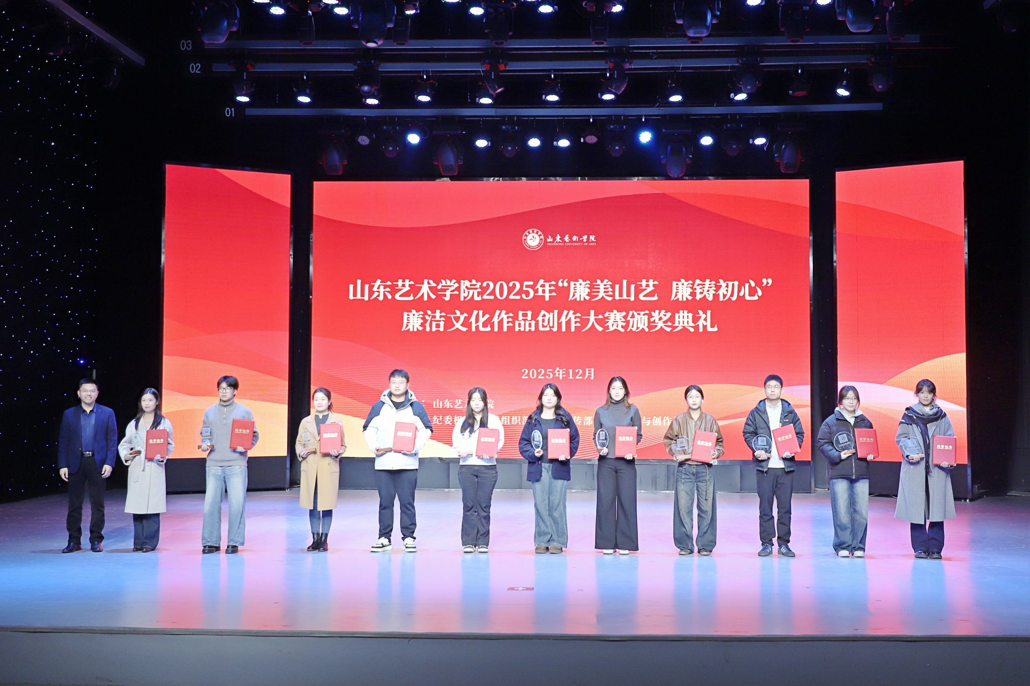 12月16日,学校2025年“廉美山艺 廉铸初心”廉洁文化作品创作大赛颁奖典礼在长清校区举行。学校党委书记徐梅,党委副书记苏茂兴,党委委员、纪委书记、省监委驻学校监察专员周立志,党委委员、宣传部部长孔宪坤出席活动。