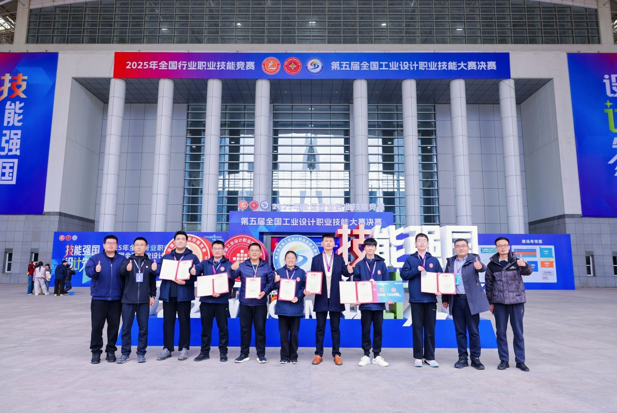 近日,第五届全国工业设计职业技能大赛决赛在浙江宁波举行。我校设计学院教师张恒旺获得家具设计师赛项(职工组)全国一等奖,2023级艺术设计专业研究生孔维宁获得家具设计师山东省选拔赛(学生组)一等奖,设计学院教授朱旭被评为优秀教练。