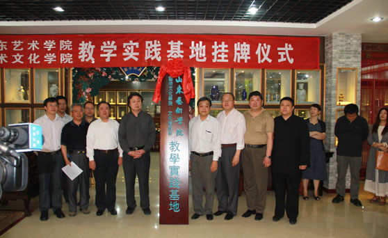 5月17日上午,我校艺术文化学院在山东省人文艺术研究院设立教学实践基地揭牌仪式暨学术研讨会在山东省人文艺术研究院举行。我校副院长刘大力、济南市政协副主席崔大庸、山东省人文艺术研究院长陈玉泉等领导出席揭牌仪式,文化传媒界企业的相关专家及我校艺术文化学院师生参加仪式。仪式上,我校艺术文化学院负责人和济南市政协副主席崔大庸一起为教学实践基地揭牌,山东人文艺术研究院向艺术文化学院捐献古瓷片标本及整件。