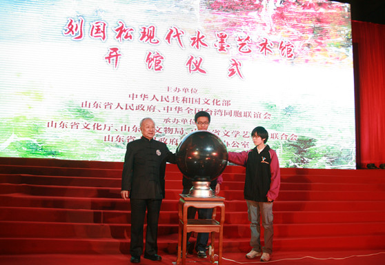 4月26日下午,由文化部、山东省政府、中华全国台胞联谊会主办的我校客座教授、现代水墨艺术大师刘国松现代水墨艺术馆开馆仪式在山东省博物馆举行。文化部副部长董伟,省委常委、宣传部长孙守刚,中华全国台湾同胞联谊会副会长纪斌,省人大常委会副主任宋远方,省政协副主席王新陆,文化部非物质文化遗产司司长马文辉,省政府办公厅副主任刘爱军,省委宣传部副部长、省文化厅厅长徐向红,省文联党组书记于钦彦,省委宣传部外宣办、省政府新闻办公室主任王世农,省台湾事务办公室副主任庄卫平,我校张志民院长,著名画家张登堂等出席开馆仪式。