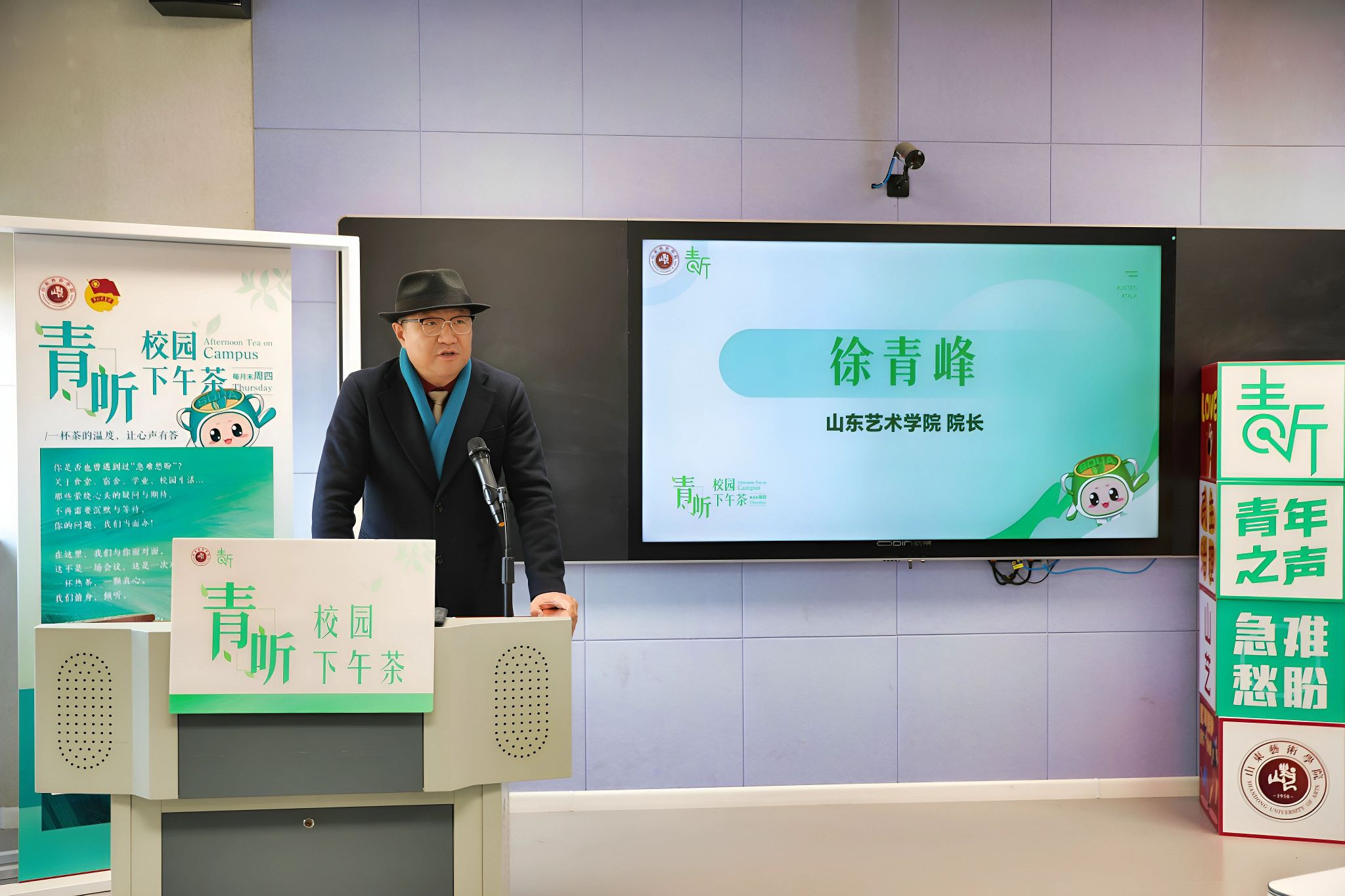 徐青峰在讲话中指出,学校始终坚持立德树人根本任务,以师生为中心,全心全意营造温暖育人环境,致力于全面提升学生的归属感、幸福感、获得感。他要求各单位、部门对同学们关心的“急难愁盼”问题,拿出切实可行举措,建立台账、限时落实、全程公开,切实做到“接诉即办、事事回应”。他寄语同学们要“敢发声、多参与、向远方”,以主人翁姿态助力学校建设发展,遇见更美好的山艺,成为更优秀的自己。