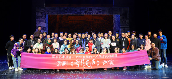 12月28日、29日,由山东艺术学院出品的国家艺术基金2019年度大型舞台剧和作品创作资助项目、2019年山东省现实题材及革命历史题材舞台艺术创作重点项目无场次原创话剧《雪落无声》在山东省会大剧院歌剧厅成功演出。浙江演艺集团副总经理、浙江话剧团有限公司总经理余斌,福建人民艺术剧院院长杨翔,南通话剧团团长杨晶、副团长孙丽,天津师范大学影视表演系主任帅彬彬,山东高校艺术教育联盟主席、山东艺术学院原副院长高启光,山东省柳子剧团团长李贝,山东省话剧院副院长董璇,济南市儿童艺术剧院院长韩鲁等专家学者以及济南各界观众共2000余人观看了演出。江苏省话剧院、珠海演艺集团、青岛话剧院等院团通过不同方式对话剧的顺利演出表示祝贺。