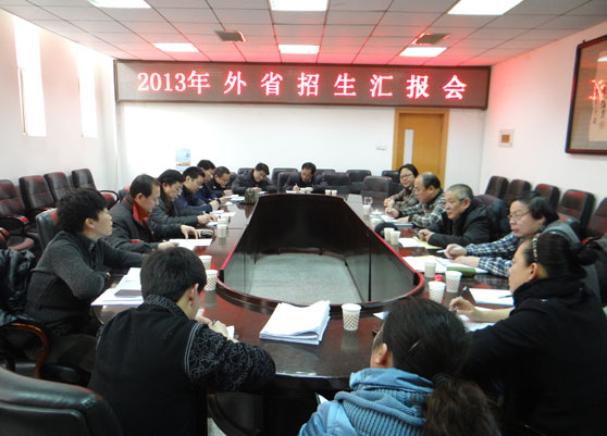 2月2日下午,我校2013年外省招生工作汇报会在文东校区综合楼二楼会议室召开。学校领导任运河、张志民、刘大力、王力克出席会议,我校赴黑龙江、陕西、河南、江苏、湖南考点招生的负责人及招办外派人员参加会议。会议由招办负责人主持。
