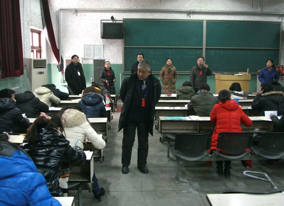 1月6日上午,我校2012年艺术硕士专业学位招生复试工作的政治与专业理论考试在文东校区阶梯教室进行。院长张志民在院办和研究生处有关负责同志陪同下对考试现场进行了巡视。
