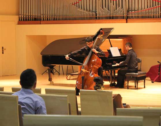 此次国际低音提琴比赛,共有百余名选手参赛,经过两轮激烈的比拼,我校音乐学院2010级研究生陈天航同学(师从虢胜龙教授)顺利闯入决赛,在进入决赛的选手中是唯一一位综合艺术院校的学生。最终,陈天航同学以《b小调第二协奏曲》(Giovanni Bottesini)的出色表现位列第八名(金、银、铜奖分别为第一、二、三名),并被组委会授予首届中央音乐学院卡丹萨国际低音提琴比赛专业青年组“优秀表演奖”,成为我校低音提琴专业首位在国际比赛中获奖的学生。