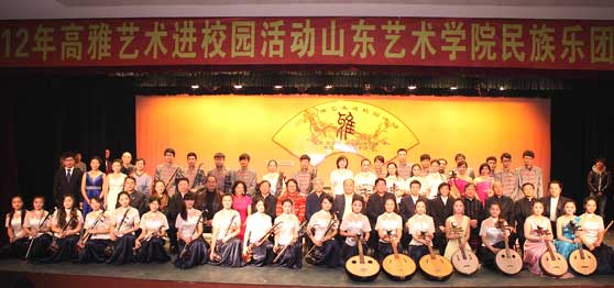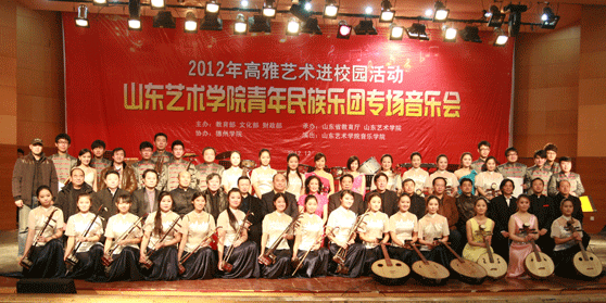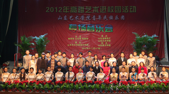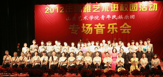 据悉,2012高雅艺术进校园活动共有10场演出,全部由我校青年民族乐团承演。接下来,他们将走进山东英才学院、德州学院等高校,为其带来高雅的艺术享受。