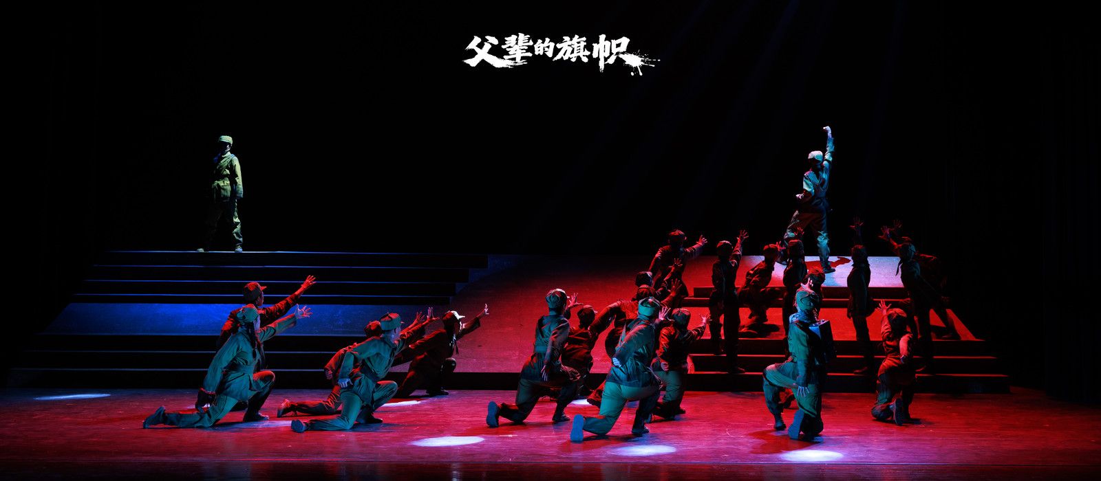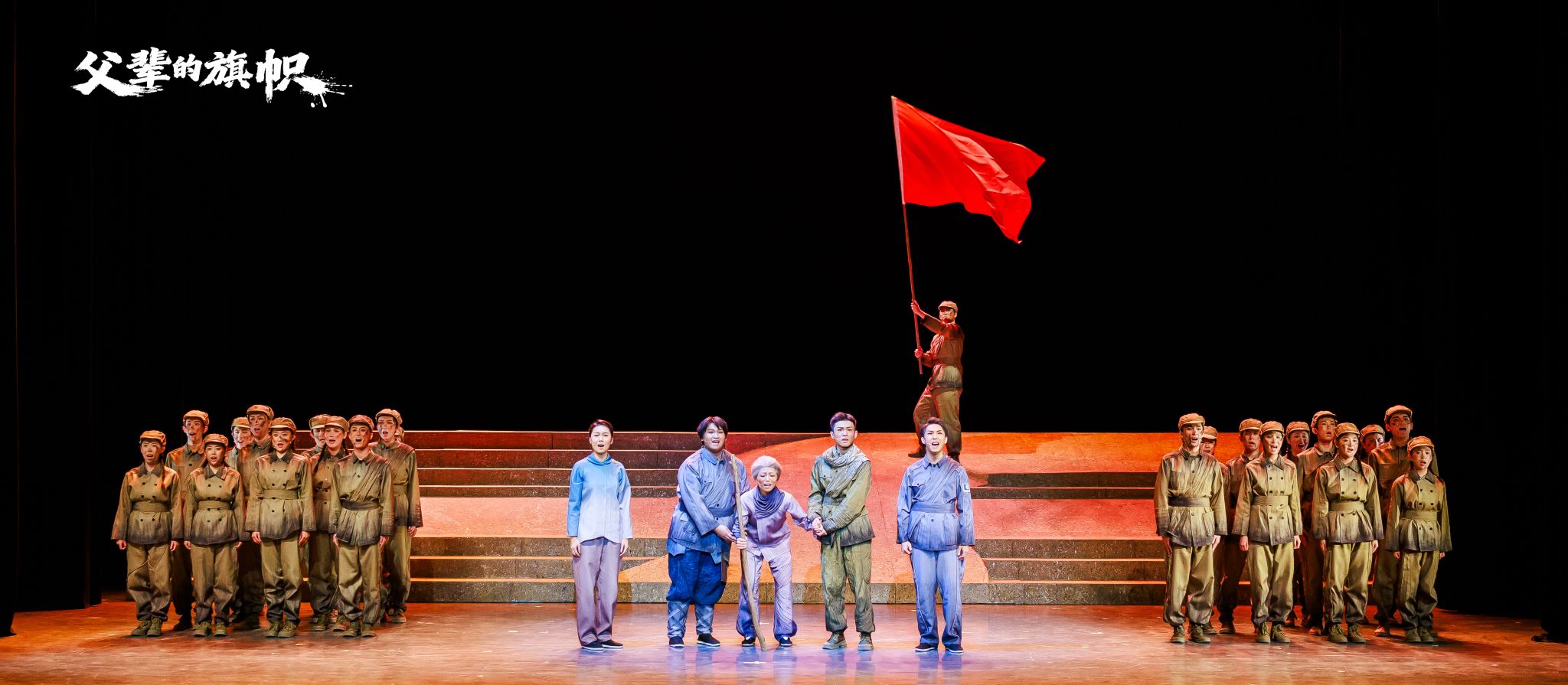 《父辈的旗帜》是山东艺术学院原创音乐剧“旗帜三部曲”第二部,以1950年抗美援朝战争为明线、1937-1945年抗日战争为暗线,讲述抗日烈士遗孤王康乐奔赴朝鲜战场,在与养父王信义的冲突与和解中,揭开身世秘密、理解父辈精神、最终以身殉国的英雄故事。全剧通过“平民史诗”的创作导向,塑造有血有肉的平凡英雄群像,诠释英雄主义在最普通人身上的生根发芽与代际传承。