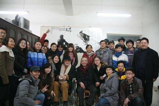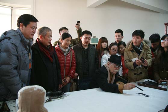 座谈会上,李奇茂先生向我校赠送了其新出版的画册《李奇茂水墨天地》和《李奇茂书画作品集》,张志民院长代表学校接收画册并回赠李奇茂先生《时代·生活·艺术——“向党的十八大献礼”山东艺术学院美术作品展集》;李奇茂先生还饶有兴致地现场挥毫泼墨创作了充满现代气息的国画作品《看我》,并捐赠给我校。座谈会结束后,李奇茂先生一行在张志民院长的陪同下,先后参观了我校校史馆、汉画像石艺术馆和于希宁纪念艺术馆,对对我校深厚的底蕴、丰富的馆藏、精巧的展馆设计赞叹不已。