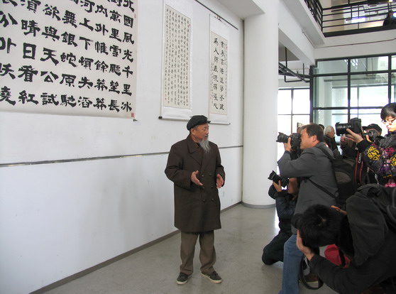 在党的十八大召开的喜庆日子里,11月12日上午10时,由山东艺术学院、山东省书法家协会主办的梁敬泗教授书法作品展开幕式,在我校长清校区美术馆隆重举行。副院长王力克,省文联副主席、省美术家协会副主席杨枫,省书法家协会副主席、我校美术学院书法系主任于明诠,85岁的梁敬泗教授及我校部分老教授,设计学院、美术学院、老干部处负责人及百余名师生参加开幕式。开幕式由设计学院院长刘玉泉教授主持。