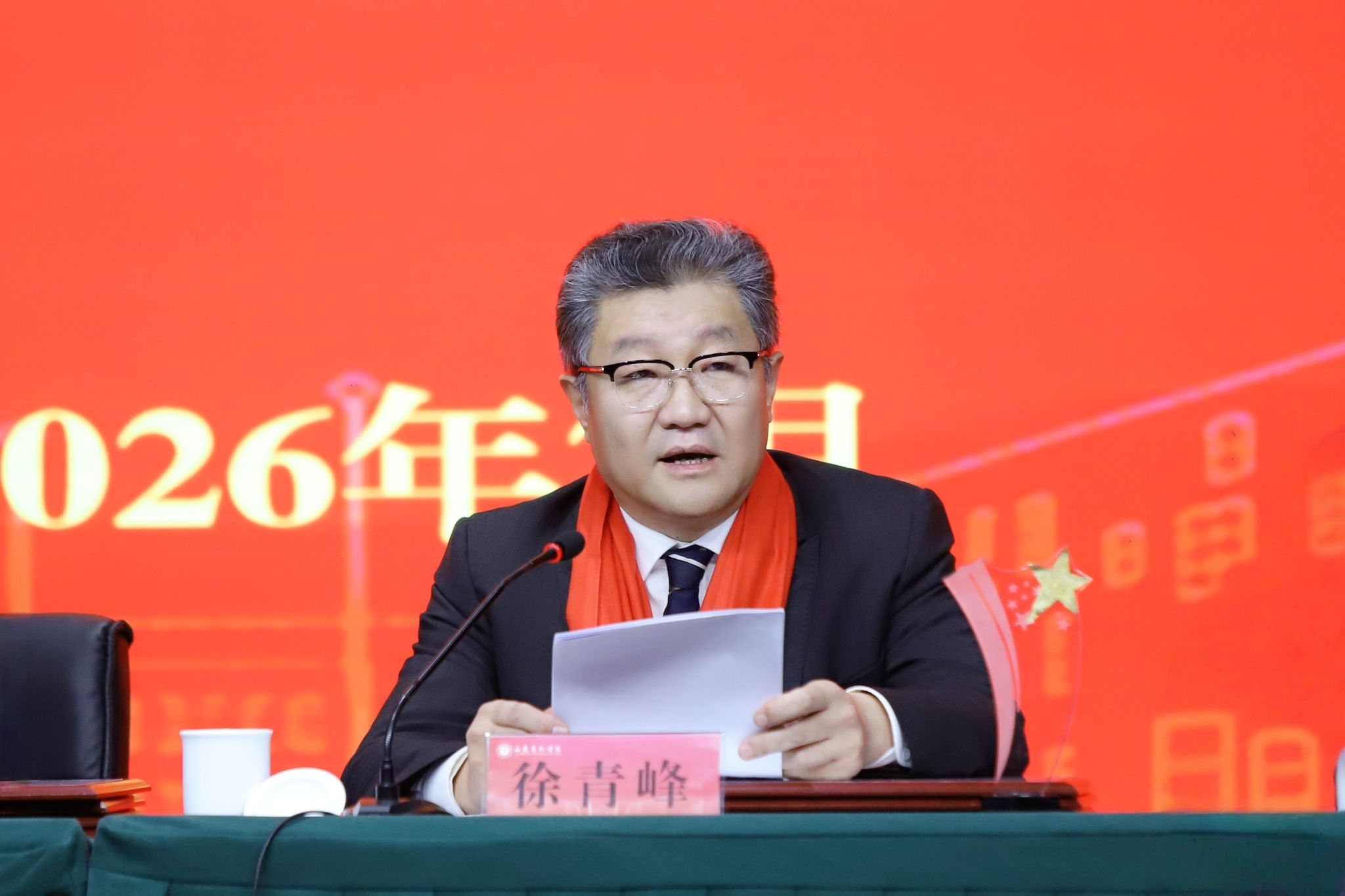 徐青峰强调,2026年是“十五五”开局之年,全校上下要坚持以习近平新时代中国特色社会主义思想为指导,以落实全国、全省教育大会精神为主线,以“深化改革年”“作风建设年”“管理质效提升年”为抓手,高标准强化党的全面领导、高站位编制实施“十五五”规划体系、高规格落实立德树人根本任务、高层次强化学科体系支撑、高能级驱动科研创作与社会服务、高效能锻造高质量人才梯队、高格局拓展开放办学新局、高水准优化内部治理体系、高要求统筹发展与安全,确保“十五五”开好局、起好步。徐青峰还从八个方面对寒假各项重点工作作出具体部署安排。