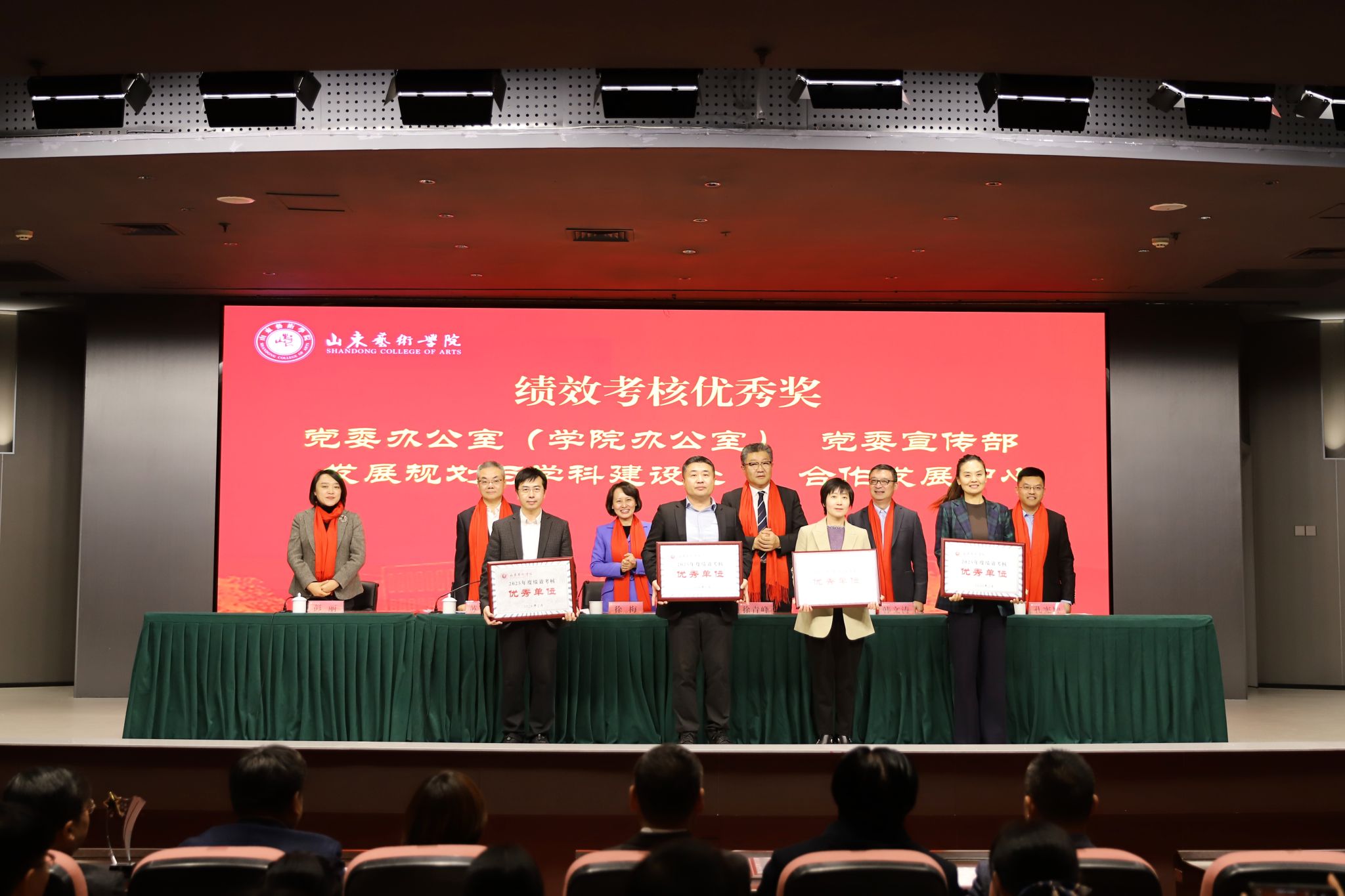 学校绩效考核优秀奖获奖单位代表科研处、美术学院、设计学院负责人,干事创业先进集体获奖单位代表学生工作部负责人、教学单位突出成就奖获奖单位戏曲与曲艺学院负责人、服务保障奖获奖单位代表离退休工作处负责人先后作交流发言。