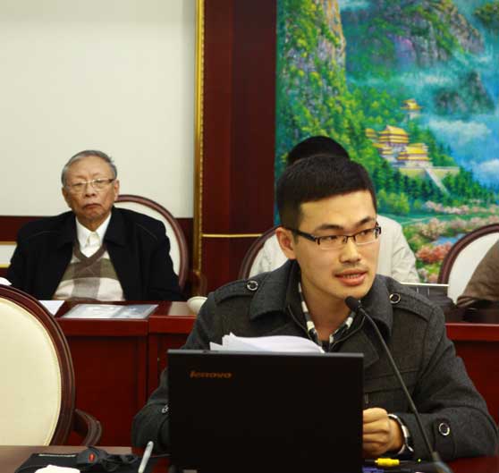 第二会场由亚太民族音乐学会秘书长、中央民族大学音乐学院毛继增教授和山东省文联副主席、山东省音乐家协会主席张桂林主持。何丽丽副教授、张桂林主席、冯芸教授、孟猛同学、侯小林老师、齐江副教授、钟璐璐同学、屠金梅博士,围绕“区域音乐的传承研究”分别作了题为《< 金瓶梅>与柳子戏关系考》、《齐鲁传统音乐的曾经发展和思考》、《多元文化视野中的非物质文化遗产传承——由中国昆曲发展变迁引发的思考》、《对中国傣族葫芦丝的分析与思考》、《高师音乐院系民族器乐教学的现状调查与研究报告》、《乐亭影戏与敦煌说唱》、《现代古筝创作中的传统元素——以王建民的四首筝曲为例》和《“宣传功”及其附体歌唱(传功)的研究》的发言,与会专家师生在探讨中还就有关问题进行了交流。