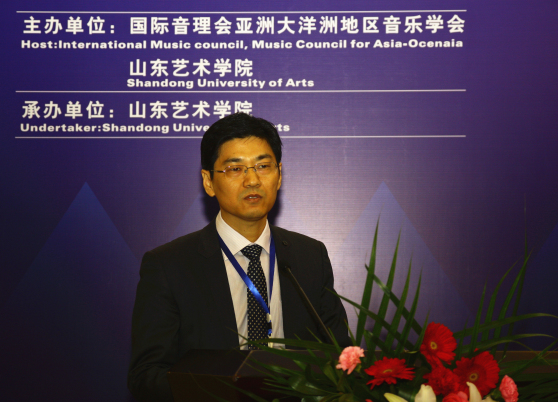 开幕式上,山东艺术学院党委书记任运河致欢迎词。任运河书记首先代表学校向与会的各位领导、嘉宾和专家、学者表示欢迎和感谢。任运河书记说,山东古称齐鲁,有着悠久的历史和灿烂的文化。孔子在这里诞生,泰山在这里崛起,黄河在这里入海,奥运在这里扬帆,是山东形象的生动写照;博大精深的孔孟文化、生生不息的运河文化、开放包容的海洋文化、多姿多彩的当代文化等共生共荣,与雄奇壮丽的自然景观一起,使山东成为名副其实的“文化圣地,度假天堂”。同时,山东也是中国的经济大省、人口大省,为中国经济发展和社会进步作出了突出贡献。任运河书记指出,深受齐鲁文化滋养、坐落于省会城市济南的山东艺术学院,经过半个多世纪的厚实积淀,现已发展成为一所在省内唯一、在国内卓有影响的综合性高等艺术学府,培养出了彭丽媛、倪萍、隋中华人民共和国成立等一大批闻名世界、享誉国内,活跃在各艺术领域,助力祖国文化事业发展的杰出校友,取得了服务世博会、亚沙会、中华人民共和国成立六十周年大庆等国际、国内重大活动和全国美展、全国京剧大赛、中国音乐金钟奖等科研和艺术实践与创作方面的累累硕果。任运河书记指出,今年11月1日,学校还将与高密市人民政府共同主办由我校音乐学院根据诺贝尔文学奖获得者莫言先生的同名小说改编的歌剧《檀香刑》剧本研讨会。当前,全校上下正在“闳约深美”校训的凝聚下,在“十二五”事业发展规划的引领下,全力实施质量立校、学科强校、特色名校、文化塑校、人才兴校、科学治校六大发展战略,努力创建具有山艺特色、山东风格、国内一流的高水平综合性艺术大学。任运河书记强调,学校的音乐学科是三大传统优势学科之一,为省级重点学科和特色重点学科,设有音乐学和民族音乐学两个“泰山学者”岗位,音乐学专业为省级特色专业建设点。山东是“孔孟之乡,礼仪之邦”,好客的山东人和热情的山艺人不仅会用最热烈的掌声、最热情的微笑欢迎省内外、海内外朋友的到来,还会用最周到的服务、最有力的保障把这次活动举办成促进世界及亚太地区音乐文化、音乐教育、音乐研究与交流的学术盛会,举办成加深了解、增进友谊、促进共识的和谐盛会。