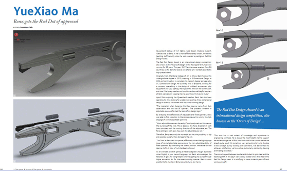 马岳骁同学今年硕士研究生毕业于澳大利亚格里菲斯大学昆士兰艺术学院产品造型专业,《蟹爪扳手》是其毕业设计作品。在参加红点设计大赛时分别提交了概念图纸和实物作品,该实物作品目前已被新加坡红点设计博物馆收藏。