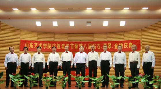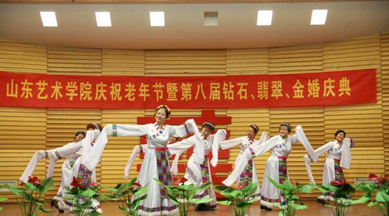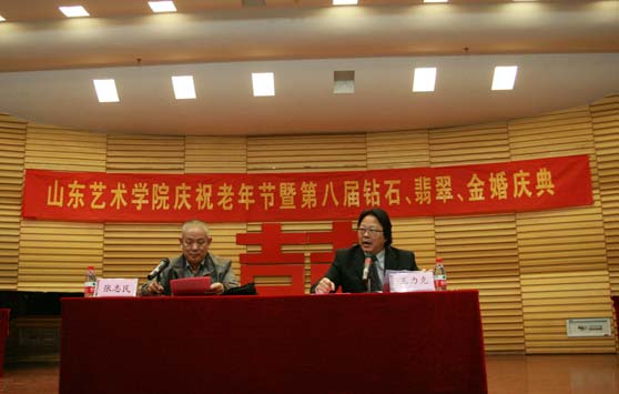 庆典仪式上,张志民院长代表学校党委、行政致辞。张志民院长首先向全校离退休老同志表示节日的问候,祝愿老同志节日快乐、身体健康、万事如意,并代表学校党委、行政向风雨同舟的11对恩爱夫妻表示祝贺。张志民院长指出,山东艺术学院经过五十多年的建设与发展,取得了令人瞩目的办学成绩,回顾学校建设发展的历史,无比感激为学校建设辛勤耕耘的历届学校领导和广大离退休老同志,他们用智慧和辛勤的汗水使学校一步步发展壮大,学校半个多世纪以来取得的各项成绩都饱含着他们的辛勤耕耘和鼎力奉献,学校未来的发展更需要他们一如既往的关注和支持。张志民院长强调,尊老敬老是中华民族的传统美德和优良品质,做好老干部工作是社会文明进步的重要标志;我校将不断加强和改进老干部工作,积极落实老干部政策,努力为老同志创造宜居环境,让老同志们充分享受优待服务和学校发展成果;各二级学院和各部门领导要大力倡导、努力营造尊老、敬老、助老的良好氛围,满腔热情地为老同志服务,真心实意地为他们解决困难,让我校的离退休老同志心平气顺、健康幸福地享受晚年生活。张志民院长号召,全校教职员工要团结一心,深入学习实践科学发展观,共同为创建山艺特色、山东风格、国内一流的高水平综合性艺术大学而努力奋斗。