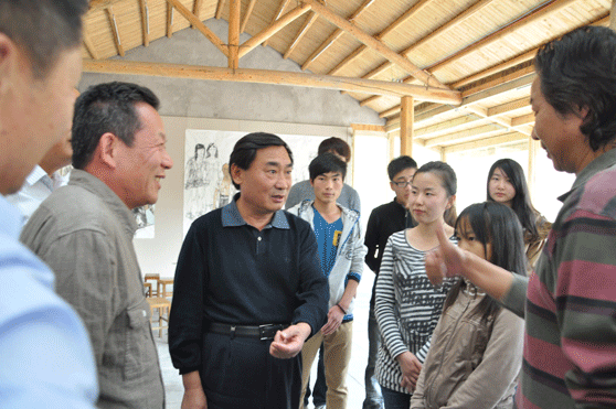 10月20日,在蒙阴大洼写生基地举办的“热爱大洼,保护大洼,写生大洼”中国画画展上,我校美术学院李忻峰副教授及其带领的2011级意笔人物专业学生作品,受到了原山东省副省长郭兆信的高度评价。郭兆信副省长与我校师生亲切交谈,并合影留念。