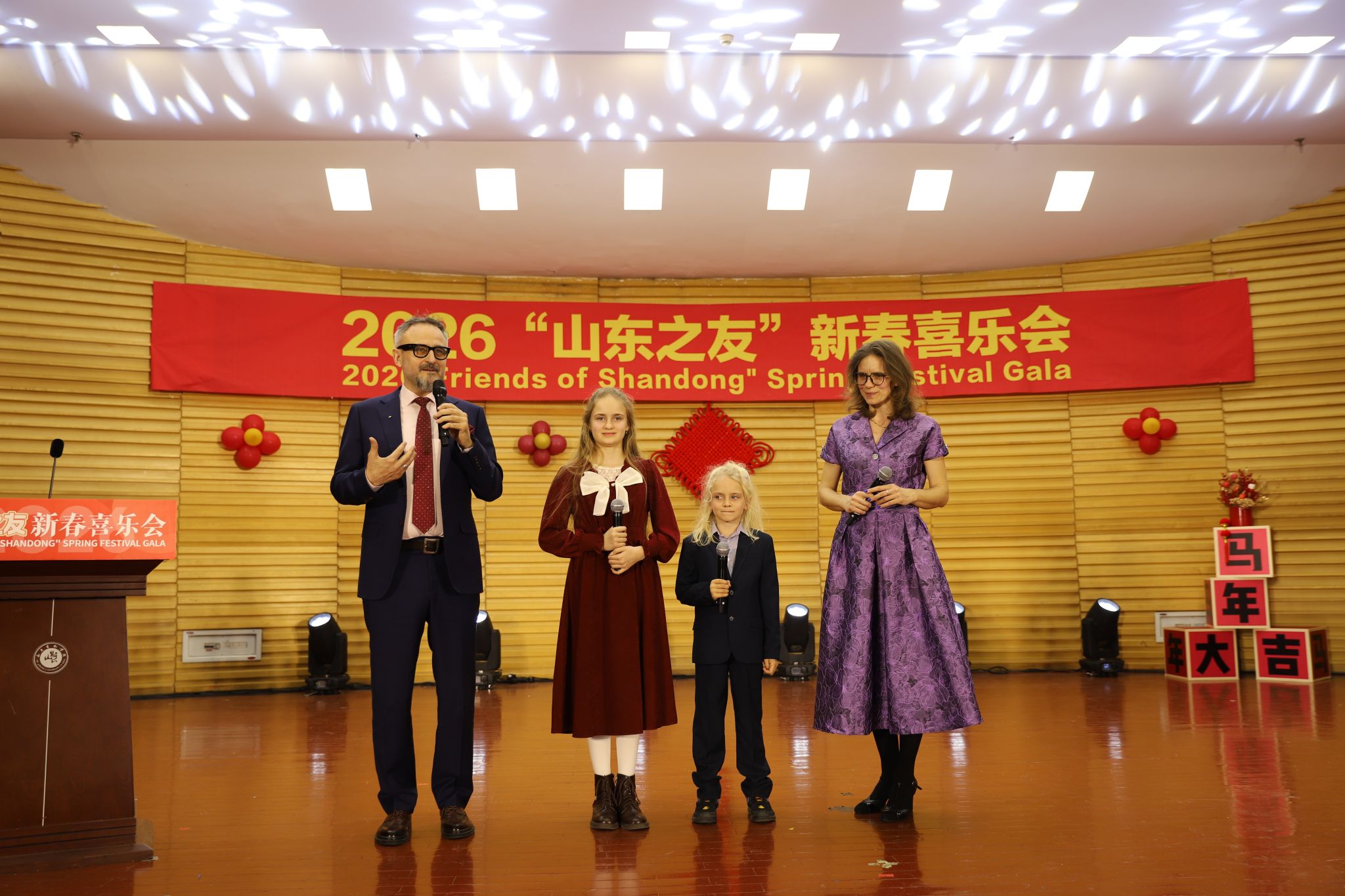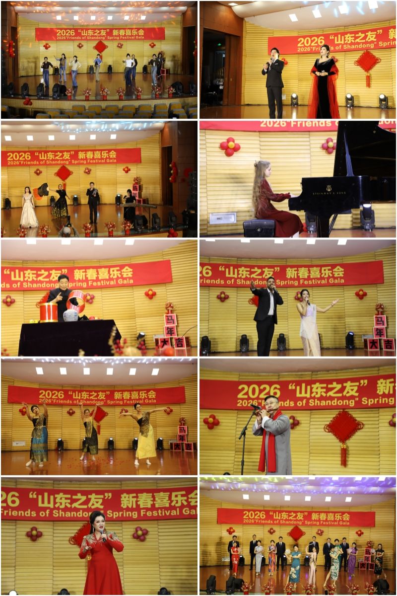2月9日,“山东之友”新春喜乐会文艺演出在我校文东校区音乐厅举行。活动由中共山东省委外事办公室和我校联合主办。省委外事办主任、省对外友协会长陈白薇,省委外办副主任林海滨、李红、杨怀广,我校党委书记徐梅,党委委员、副院长韩文涛,来自9个国家的20余名在鲁工作和学习的外籍专家、企业代表、商协会代表和国际学生出席活动,省委外办及我校相关职能部门参加活动。活动由林海滨主持。