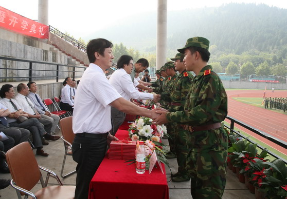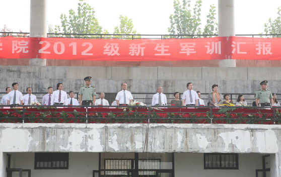 9月24日上午,我校长清校区操场彩旗猎猎,军乐嘹亮,2012级新生军训汇报暨开学典礼隆重举行。校党委书记任运河,院长张志民,副院长刘大力、王力克、刘晓静、高启光以及济南军区坦克乘员训练基地副政委侯宗运在主席台前排就座。大会由副院长刘大力主持。学校相关职能部门及各二级学院主要负责同志在主席台就座。