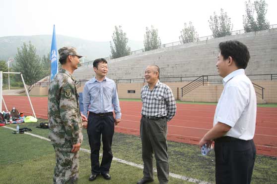 9月10日上午,张志民院长来到长清校区体育场,察看2012级新生军训工作,并看望和慰问承训官兵和工作人员。学生处相关负责同志陪同察看。