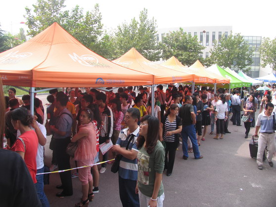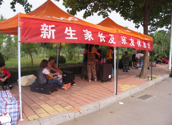 9日清晨,学校迎新工作人员一大早便来到工作场所,等待前来办理手续的新生。学校两校区打出了“热烈欢迎2012级新同学”、“珍惜新起点,笑迎新生活”、“金秋送爽喜迎八方学子、丹桂飘香共祝美好明天”等欢迎标语,长清校区全彩屏向新生和家长播放学校宣传片,醒目的“新生报到须知”和“新生报到流程”等宣传板,都营造出了今年迎新工作严谨喜庆热烈的氛围。