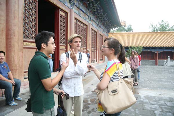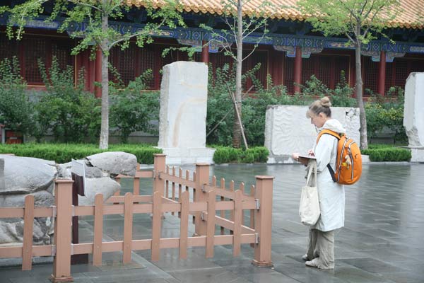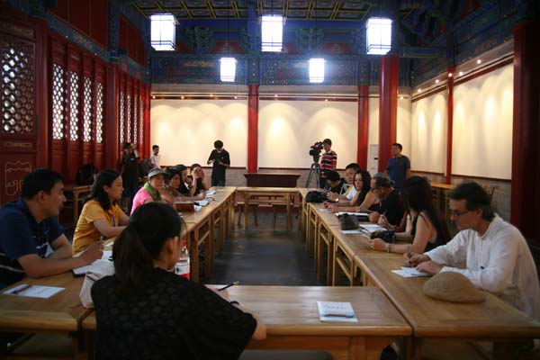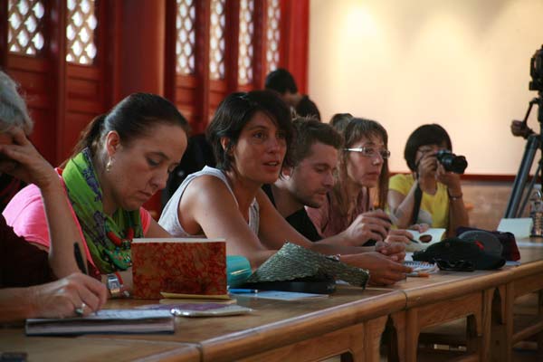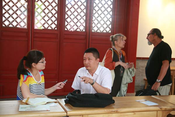 8月14日,参加“齐鲁巡礼——西方画家眼中的山东”大型系列艺术创作济南站活动的法国游记画家们来到济南府学文庙,接受中国文化报、济南日报、济南时报、济南人民广播电台等媒体的联合采访。