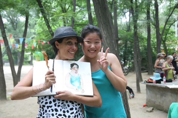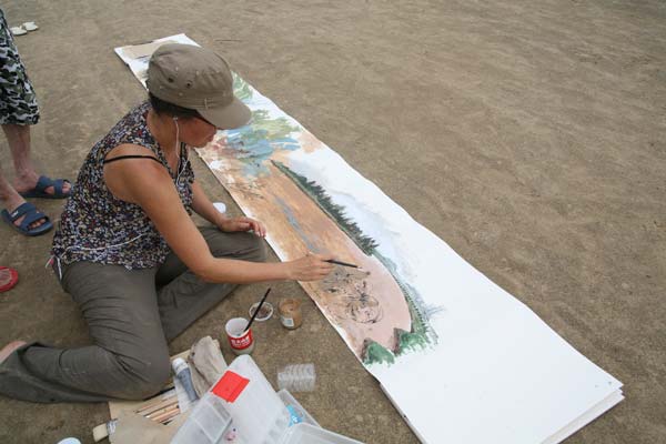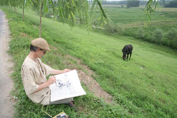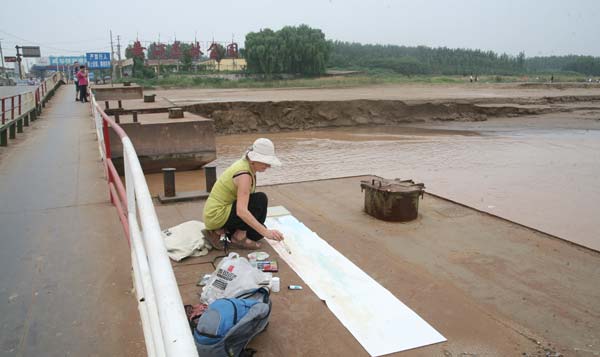 8月12日,参加“齐鲁巡礼——西方画家眼中的山东”大型系列艺术创作济南站活动的法国游记画家们来到黄河岸边,用“手工绘画”的创作形式,描绘黄河。
