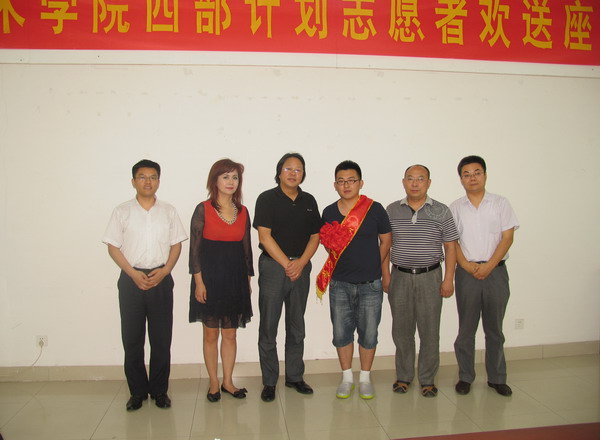 6月19日下午,我校2012年西部计划志愿者欢送座谈会在长清校区办公楼二楼会议室举行。副院长王力克,西部计划志愿者张斌,学工部、团委、志愿者所在二级学院负责人、各二级学院团总支书记和校志愿者协会及二级学院学生代表参加了会议。会议由团委负责人主持。