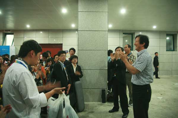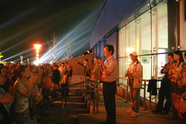晚上8点,亚沙会开幕式文艺演出预演在河清岛体育场举行。在观看完预演之后,高启光副院长来到体育场后台,看望慰问了我校演职人员,了解师生排练和生活情况。高启光副院长说,第三届亚洲沙滩运动会是继2008年奥运会和2010年广州亚运会后我国体育界的最大盛事。来到海阳的半个多月以来,我校师生紧张排练,精益求精,讲奉献,顾大局,从刚刚结束的精彩的开幕式预演和观众的热烈掌声,就可以看出大家为此付出了巨大的努力和心血。高启光副院长用16个字表达了学校党委和行政对所有参演师生的慰问和期望——“再道辛苦、再共努力、再创佳绩、再争荣誉”。 高启光副院长特别指出,在亚沙会开幕式文艺演出排练过程中,我校师生表现出的良好的组织纪律性和精神风貌,给组委会留下了深刻的印象,为学校争得了荣誉,提高了学校的知名度。我们相信,山东艺术学院能够以此为契机,在服务山东文化强省建设的进程中,争得更多的参与机会,做出更多更大的贡献。