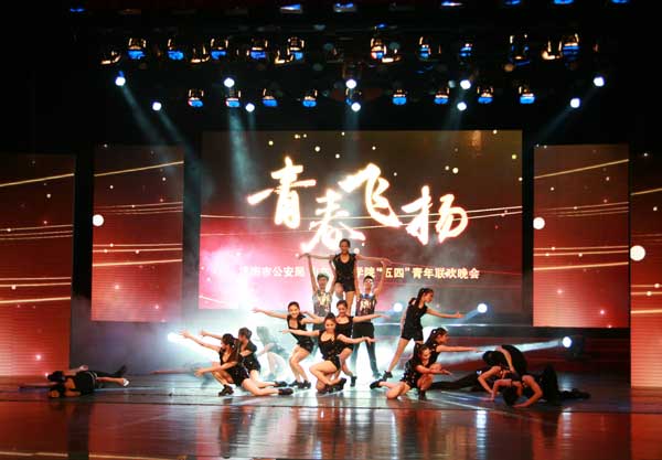 晚会在歌曲联唱《飞扬的青春》欢快动感的旋律中拉开帷幕,我校学子和来自济南公安战线上的干警联袂为到场观众奉献了一台精彩纷呈的视听盛宴。情景诗朗诵《革命烈士诗抄》真实再现了众多仁人志士为新中国解放抛头颅、洒热血的革命情怀。网络情景剧《亲,我是警察》以优秀青年民警的真实事迹为原型,用青年人喜闻乐见的形式反映了新时代警察“全心全意为人民”的高尚品格。歌舞《我们》、《大学生从警来》、《平安颂》、舞蹈《青春》、新民乐组合《茉莉花》则以富于动感的音乐、优美欢快的舞姿彰显了青年人的活力和激情。济南特警带来的舞蹈《雷霆万钧》,以威武的力量、震撼的场面,展现了特警忠诚文明、骁勇善战、保障有力的人民卫士形象。新时代的中国青年,用炽热的情怀写下了一首首壮美的青春之歌。
