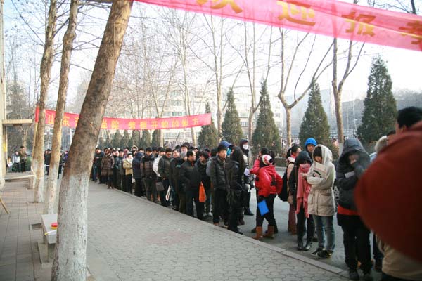 我校的报名时间为1日至5日,共5天。截至傍晚,我校仅2月1日一天报名人数就近万人。山东电视台、山东教育电视台、齐鲁电视台、山东人民广播电台、齐鲁晚报、山东商报、大众网、济南电视台、济南日报、济南时报等众多新闻媒体当天采访了我校的报名情况。