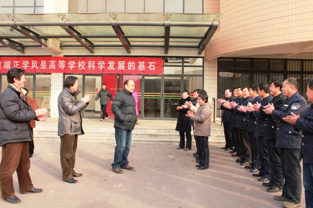 1月22日是农历大年二十九,雪后的济南寒意逼人,校党委书记任运河,副院长王力克、高启光带领部分单位负责人冒着严寒到文东校区和长清校区看望并慰问了春节期间的值班人员,并向他们致以节日的问侯和新春的祝福。