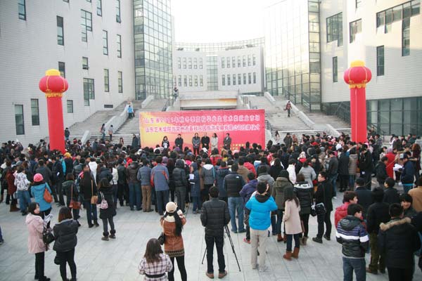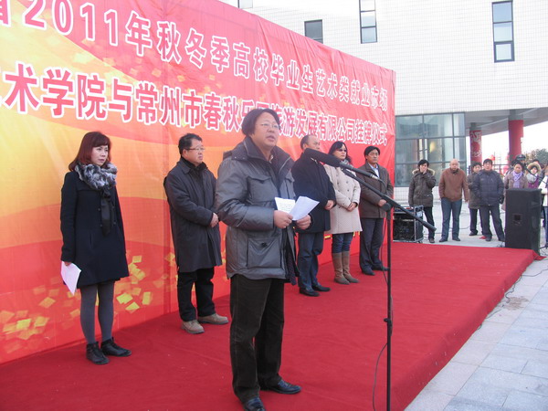 12月10日我校长清校区一派热闹场景,上午9时“山东省2011年秋冬季高校毕业生艺术类就业市场启动仪式”暨“山东艺术学院与常州市春秋乐园旅游发展有限公司挂牌仪式”在图书馆前举行。