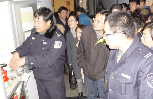 培训班上,杨兆合警官结合济南市和文东辖区消防事故案例,讲解了第一时间报警并迅速实施初期火灾灭火的应急事项;文化东路派出所藏莉副所长分析了当前防火形势和消防工作的重要意义;孙贤明警官在会场外现场示范了灭火器使用、消防设施管理、逃生方法和技巧等应急知识。培训结束后,派出所干警们饶有兴致地参观了我院集消防、治安于一体的监控值班室,对我校消防设施管理、专项经费保障和投入给予了较高的评价。