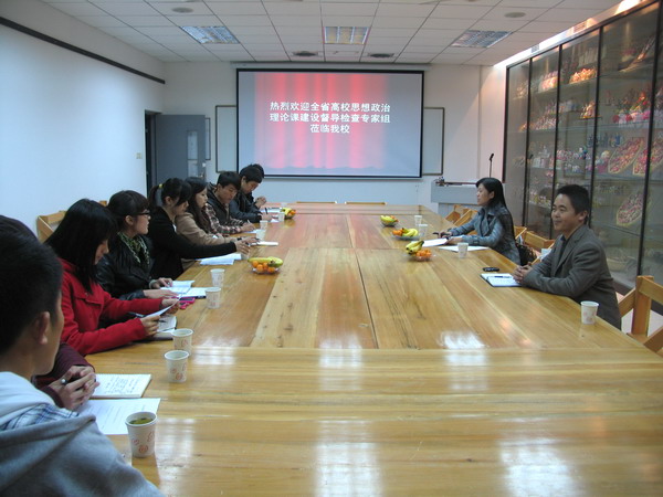 校党委书记任运河详细汇报了我校思想政治理论课的建设情况。我校的主要做法与成绩,一是组织管理措施到位,体制机制逐步健全;二是教学管理更加规范,教学改革不断推进;三是队伍管理不断加强,团队建设成绩斐然;四是课程建设起步良好,科研工作进步明显;五是特色项目积极推进,教学研究成果显著。我校存在的主要问题,一是思政课程建设需要进一步强化,二是教学科研能力需要进一步提升,三是师资队伍建设需要进一步加强,四是教育教学实效需要进一步提高。我校今后将严格按照《高等学校思想政治理论课建设标准》进行整改和建设,大力加强师资队伍建设、课程建设,积极改善教育教学条件,大力推进教育教学改革,努力把思想政治理论课建设成为让大学生真心喜爱、终身受益、毕生难忘的优质课程,更好地促进大学生的全面发展。一是大力加强思政课程建设,二是着力提升教师科研水平,三是不断加大师资建设力度,四是积极推动教学改革创新。