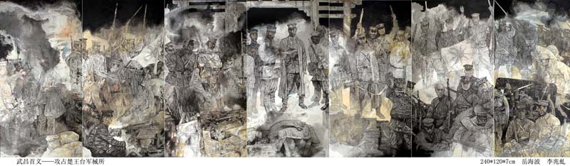 “回望中国——纪念辛亥革命100周年综合美术作品展”采风、考察、创作活动从策划到实施历时一年多的时间,于2011年5月底在北京启动。在启动仪式过后,主办方组织主创画家沿辛亥革命酝酿、发起、革命、成功的历史线路赴广州、武汉、北京等地采风、考察并创作主题作品,还组织保存修复专家赴各地对辛亥革命旧址与遗迹进行保存修复研究。这次展览由在中国美术馆的主展场和位于广州美院美术馆、湖北美术馆、北京恭王府等地的分展场组成。我校岳海波教授、李济民教授参与了展览的策划和布展等具体工作。