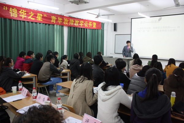 本周“锦华之星”2011年度青年教师教学公开课观摩终评活动进行了最后六场的评比,分别是设计学院张博晨老师的《数字媒体设计》、邵巍巍老师的《展示设计》,戏剧影视学院张骁将老师的《播音文体》,艺术文化学院陈凌老师的《文化市场营销学》,音乐学院岳薇老师的《中国民族音乐概论》和舞蹈学院吕莹老师的《中国古典舞基训》。