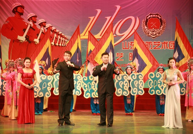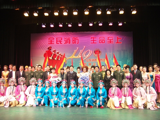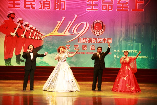 11月9日晚,由山东消防艺术团主办,艺术实践中心承办的“全民消防 生命至上——山东省暨济南市‘119’消防文艺晚会”在我校文东校区大剧场成功举办。我校院长张志民,省公安厅副厅长、警察学院院长王献增,省公安消防总队总队长王郭社、政委刘海,山东消防艺术团政委、省公安消防总队副总队长亓延军,山东消防艺术团团长、我校副院长郭跃进,我校副院长高启光等领导与500余名消防官兵、学生及驻济新闻界人士共同欣赏了这场精彩的艺术盛宴。本场晚会也是山东省人大今年3月1日重新修订实施《山东省消防条例》、并将每年的11月确定为全省消防安全宣传月后的首场大型文艺演出。