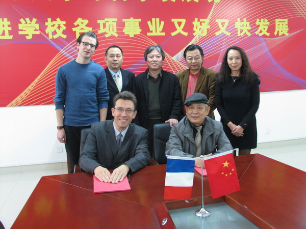 仪式上,双方在友好的气氛中举行了座谈,就两校基本情况、音乐教育教学、人才培养模式、政府社会资助等方面进行了交流。随后,贝诺瓦·宝马哥特内院长和张志民院长共同签订了《中国山东艺术学院与法国布列塔尼音乐学院签订友好交流与合作备忘录》,双方今后将进行教育及研究等有关资料和信息交流、教师的相互交流与互访、相关专业的合作与学生交流等活动。