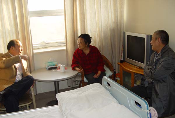 在千佛山医院的病房里,任运河书记、张志民院长详细了解了王教授的病情和医院的医疗条件,高度赞扬了王教授在教育教学上取得的成绩。任运河书记讲道,我校丰富的艺术底蕴是广大离退休老教授、老干部经过半个多世纪的辛勤耕耘造就的,他代表校党委、行政向广大离退休老教授、老干部表示感谢。任运河书记和王教授还畅谈了我校的发展宏图,对把我校建设成高水平、综合性艺术大学的奋斗目标充满信心。言谈之中,王教授流露出对学校的关爱之情以及因病不能为学校教学工作贡献力量的惋惜之情。临别之际,任运河书记、张志民院长衷心祝愿王教授能早日康复。