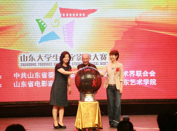 9月23日上午,由中共山东省委宣传部、山东省文学艺术界联合会主办,省电影家协会、锐影网、山东艺术学院承办的“第四届山东大学生数字影像盛典”在我校文东校区大剧场举行。山东省文联党组书记于钦彦,山东省文联党组成员、纪检组长丁殿广,山东省文联党组成员、副主席、省音乐家协会主席张桂林,我校副院长王力克等领导与全省30多所参赛高校的选手、学生代表及驻济新闻界人士共享一场视觉影像的饕餮盛宴。著名影视表演艺术家李保田,著名青年编剧、导演薛晓璐作为大赛艺术顾问出席颁奖典礼,为获奖选手颁奖。本场盛典是第四届山东(国际)大众艺术节的重要活动之一。