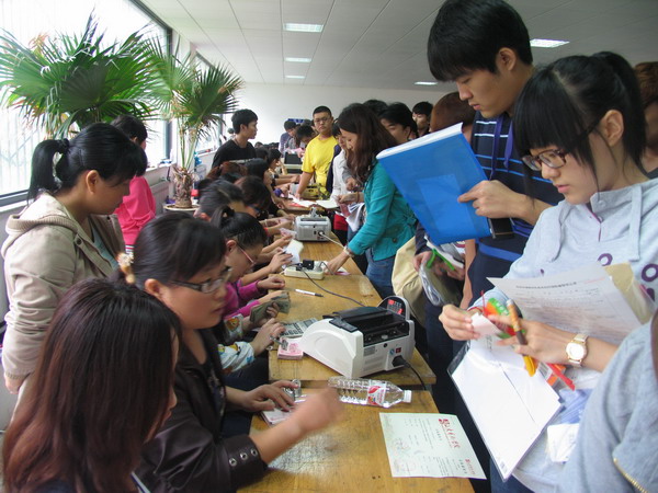 新生来到艺文楼验证缴费