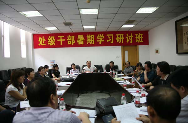 8月24日下午,根据学校处级干部学习研讨班的部署,全校处级干部进行了分组研讨活动。党委书记柳文敏,院长张志民,副院长郭跃进、刘大力、王力克、高启光到场出席研讨活动。