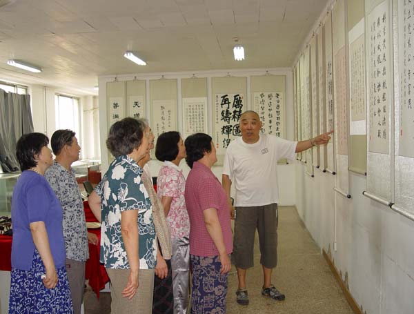 本次展览共有23位老同志的30余幅作品参展。老同志作品的内容均是围绕建党90周年的新作,参展的老同志年龄层次跨度大是本次展览的特点之一,其中不乏年过九旬的老人,他们楷书工整严谨,行书似行云流水,草书挥洒自如,件件墨宝无不让人赞叹不已。